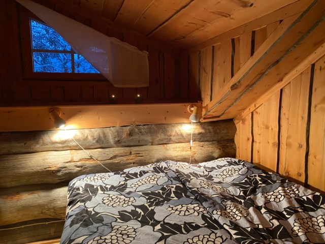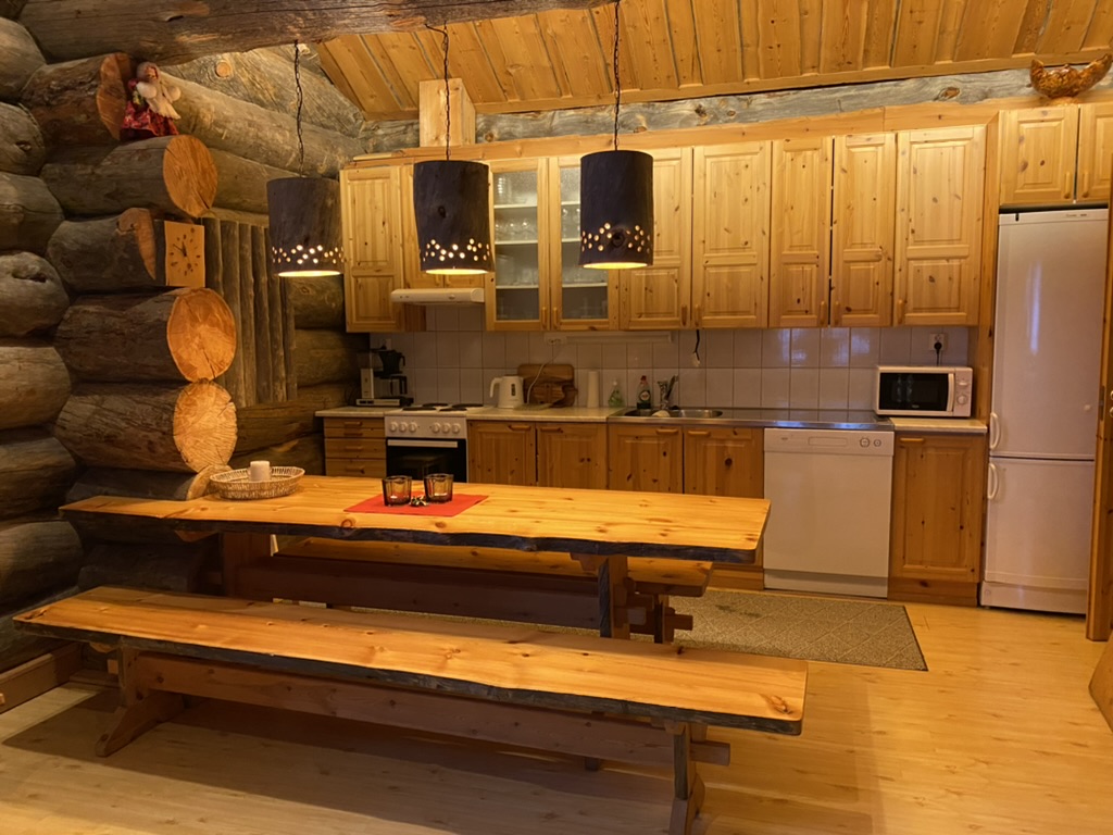 The cabin is made of Finnish deadwood, and its logs are massive. You can spend hours just admiring the wood that is hundreds of years old and grown in Finland; it is a very unique building material in cabins.
