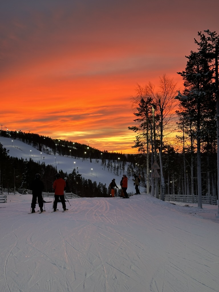 Depending on when you are skiing in Levi, dress for the weather. From November to February, it can be freezing cold, meaning you will need a scarf under your helmet (and it is the 2020s, no one skis without a helmet, as it is not only safe, it is warm) and goggles. Thin scarves to wear under are sold in all the skiing shops for a few euros. For gloves, puff mittens are the safest option, not those with five separate fingers. Remember the layers, and ensure your ski boots have some room rather than being too tight. Make sure you know where you are going; some of the anchor lifts seem to take quite a long time when it is -20 degrees.